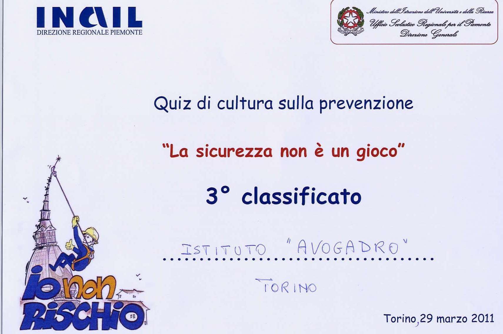 L’istituto è risultato vincitore del concorso “Sicurezza e salute negli ambienti di vita, di studio e di lavoro” – Vedi attestato – e si è classificato al terzo posto nel “Quiz di cultura sulla prevenzione” svoltosi durante la cerimonia di premazione – Vedi attestato.