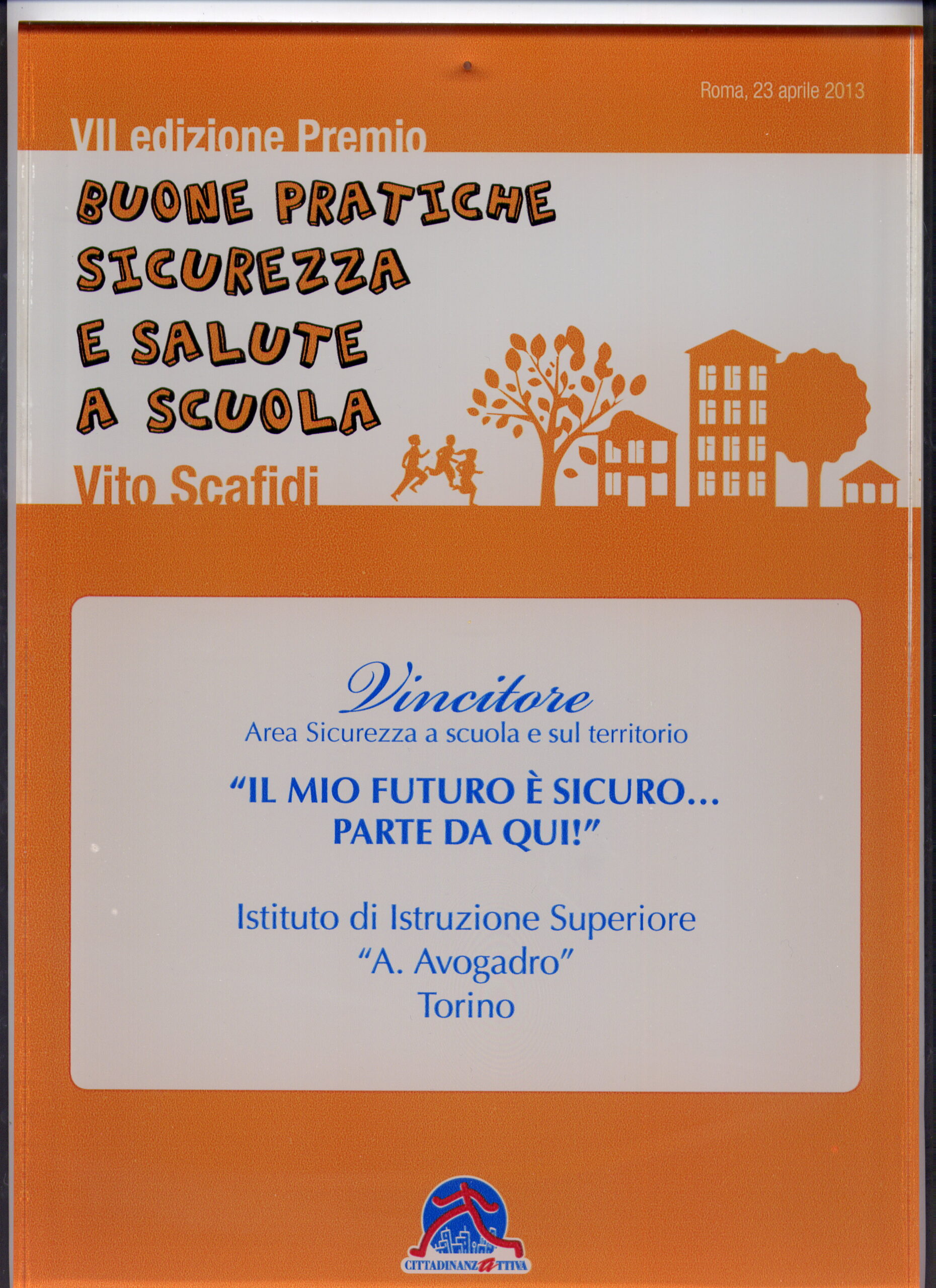 L’istituto Avogadro ha partecipato alla cerimonia di premiazione del VII Edizione del Premio Buone Pratiche di Educazione alla Sicurezza e alla Salute “Vito Scafidi”, istituito nell’ambito della “Campagna Imparare Sicuri”.